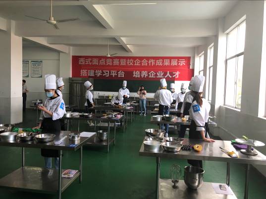 2018年5月11日在我院开展首届技能节活动中,旅游管理系烹饪专业团队教师组织西点1701班学生开展了紧张激烈的西式面点技能竞赛。