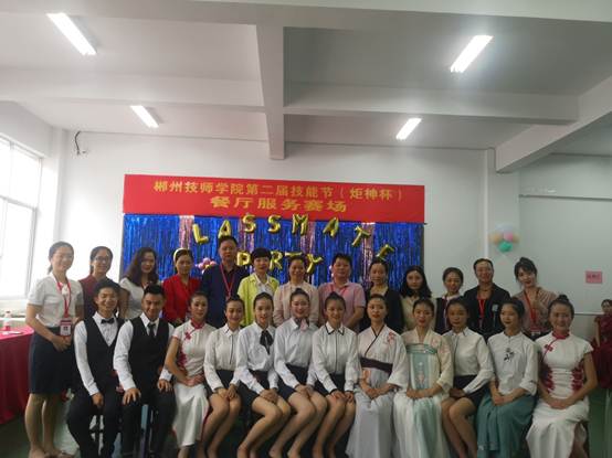 5月28日,郴州技师学院旅游管理系举行第二届技能节(炬神杯)—致青春·中餐主题宴会摆台技能比赛。学院党委书记谢革非,党委副书记、院长李雄健,以及学院中层领导和教师到现场观摩比赛。