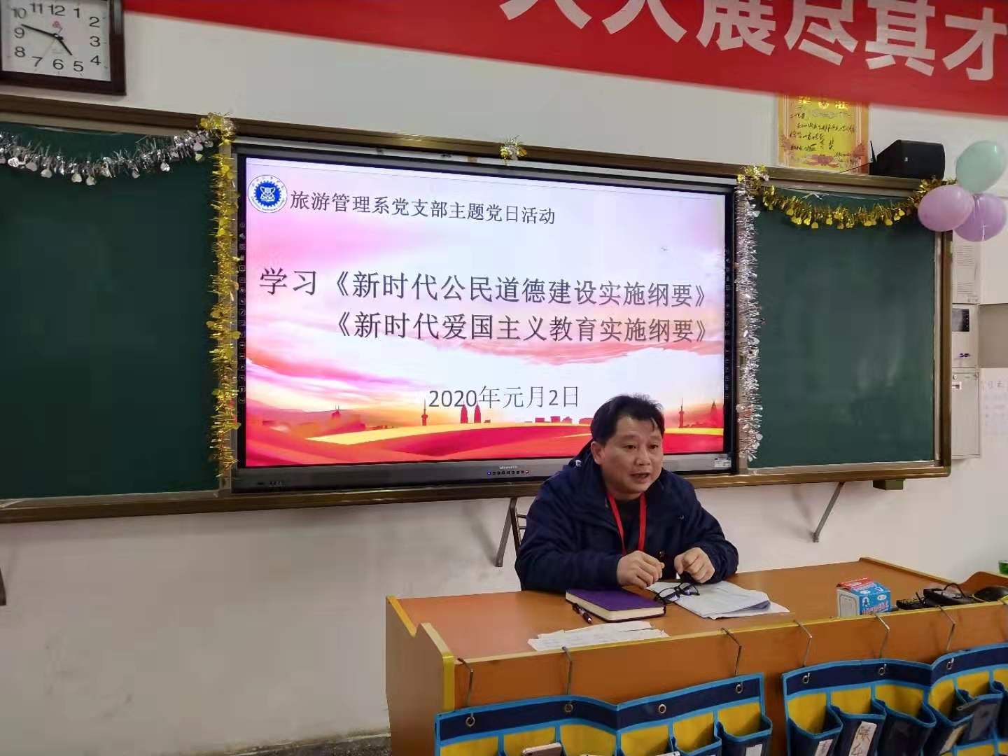 2020年1月2日,旅游管理系党支部开展主题党日活动,学习《新时代公民道德建设实施纲要》、《新时代爱国主义教育实施纲要》、党的十九届四中全会精神。