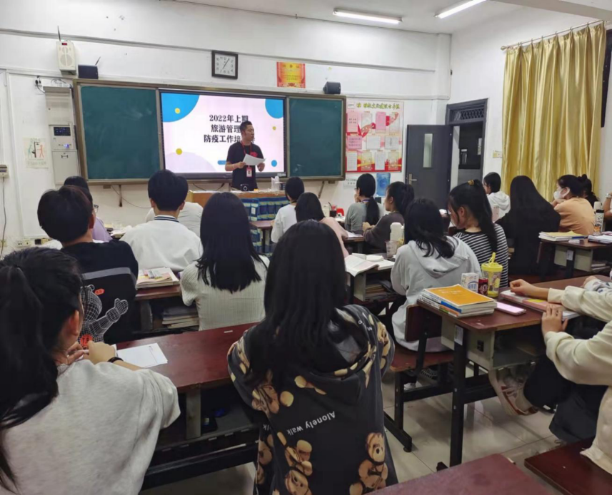 (通讯员 肖珍)3月14日19时,旅游管理系在明德楼406教室开展了防疫工作班级联络员培训会,旅游管理系副主任肖珍、学生管理干事王冠寻及在校班级班长、疫情联络员参加会议。