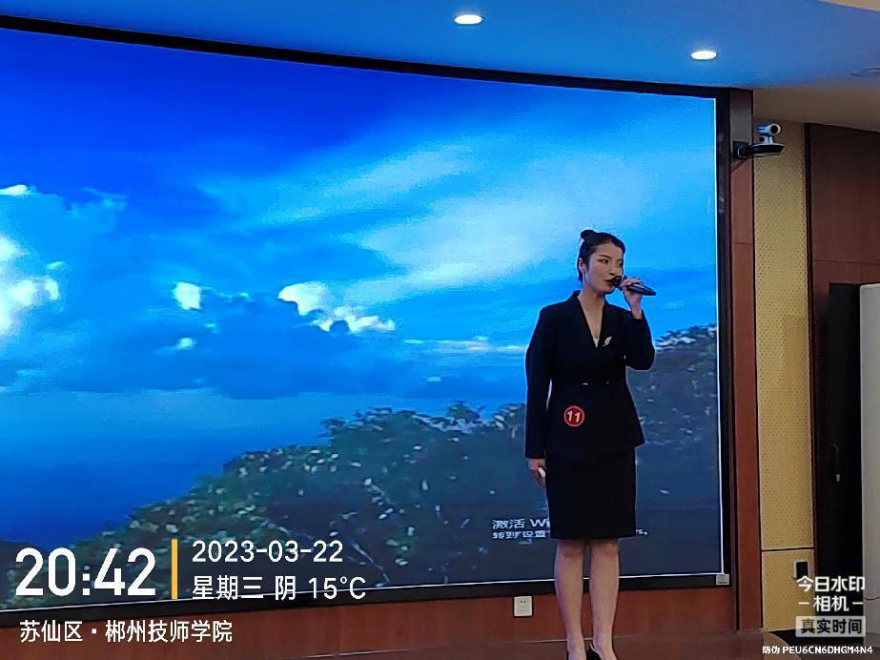 现场比赛分为自我介绍(整体形象)、自选景点讲解和规定景点讲解三个环节。导游讲解环节主要考察同学们对郴州市东江湖、莽山、仰天湖、沙洲村、高椅岭、飞天山等景点的掌握程度,并从选手的仪容仪表、讲解技巧、语言表达等进行评判。