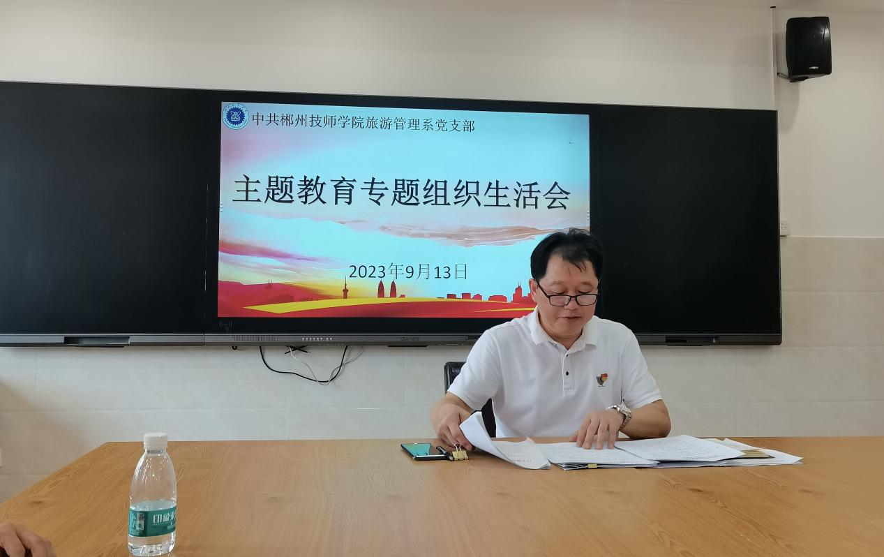 (通讯员 张梦)为深入学习贯彻习近平新时代中国特色社会主义思想主题教育,引导党员筑牢思想根基、汲取前进力量。9月13日,旅游管理系党支部在新实训楼西餐厅实训室开展主题教育专题组织生活会,会议由党支部书记黄亚平主持,系党支部全体党员参加。