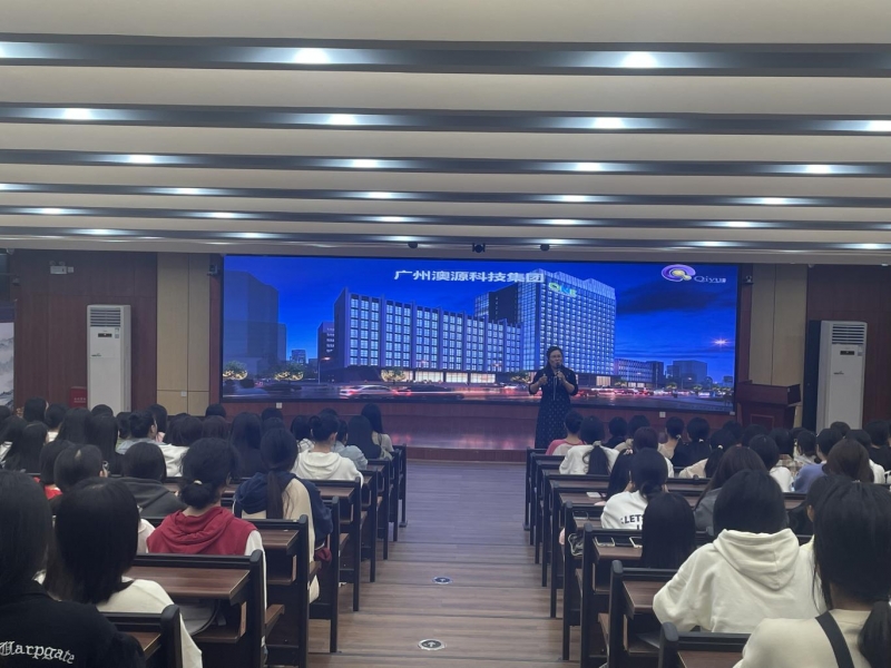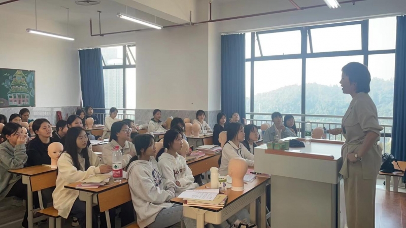 广州启誉公司总经理谭巧玲女士、福州恩雅公司总经理曹兰茵女士分别携工作人员与美容保健22级、23级全体学生见面,旅游管理系综合教研室主任肖肇鸿、美容保健专业教研组长何鎏参加会议。