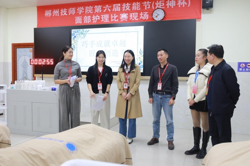 (通讯员 何鎏) 11月22日下午,旅游管理系在弘信楼511实训室组织进行郴州技师学院第六届技能节“炬神杯”之“巧手成就卓越,匠心创造非凡”面部护理赛项技能竞赛。学院党委委员、宣传统战部部长曹洁莅临现场观摩指导。