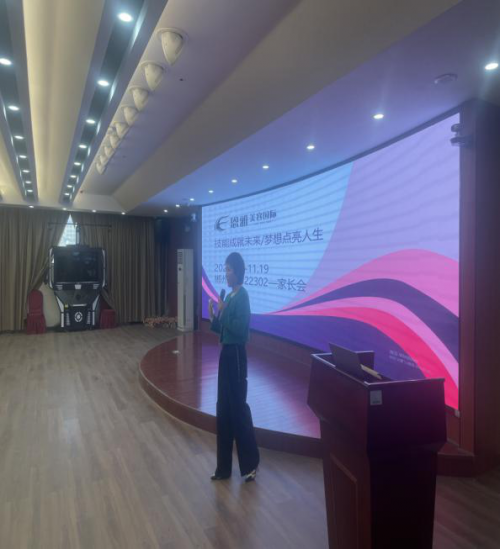 专业带头人何鎏介绍了美容专业建设发展情况,美容保健22301、22302班主任王程敏、胡玲芳老师分别介绍了班级情况、学生在校表现及专业技能掌握情况。