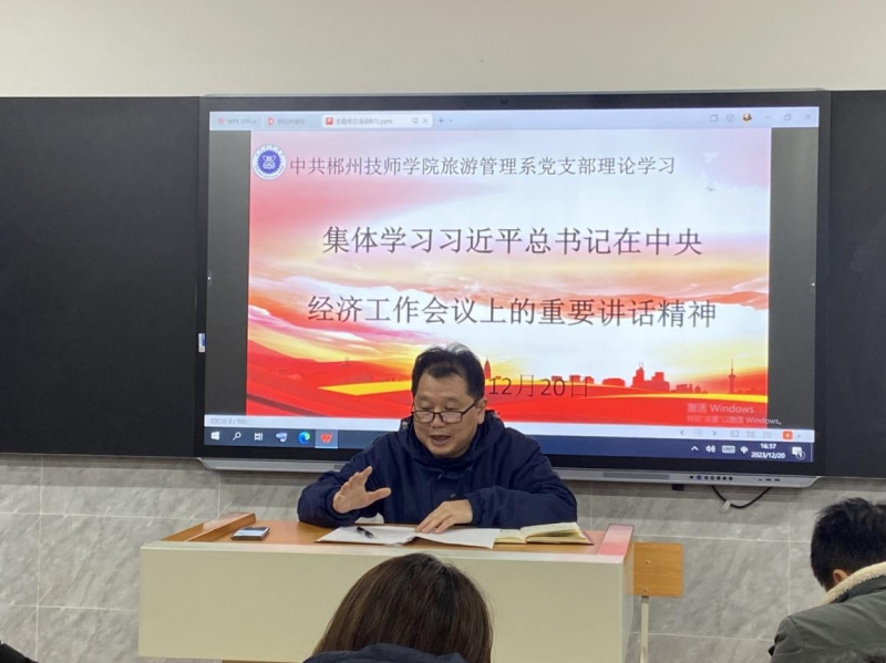 (通讯员 张梦)为深入推进学习贯彻习近平新时代中国特色社会主义思想主题教育走深走实,增强党组织生活吸引力和党员教育实效性,12月20日下午,旅游管理系党支部在图书馆804教室高质量开展“一课一片一实践”主题党日活动,活动由党支部书记黄亚平主持,支部全体党员参加会议。
