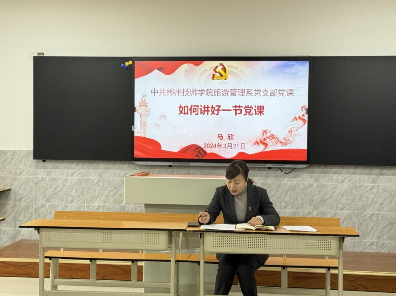 (通讯员 张梦)3月21日下午,旅游管理系党支部在图书馆804教室常态化开展“一课一片一实践”主题党日活动。此次活动由党支部副书记马欣主持,学院党委委员、宣传统战部部长曹洁以普通党员身份参加活动,支部全体党员及入党积极分子积极参与,系主任肖雄英列席此项活动。![]()