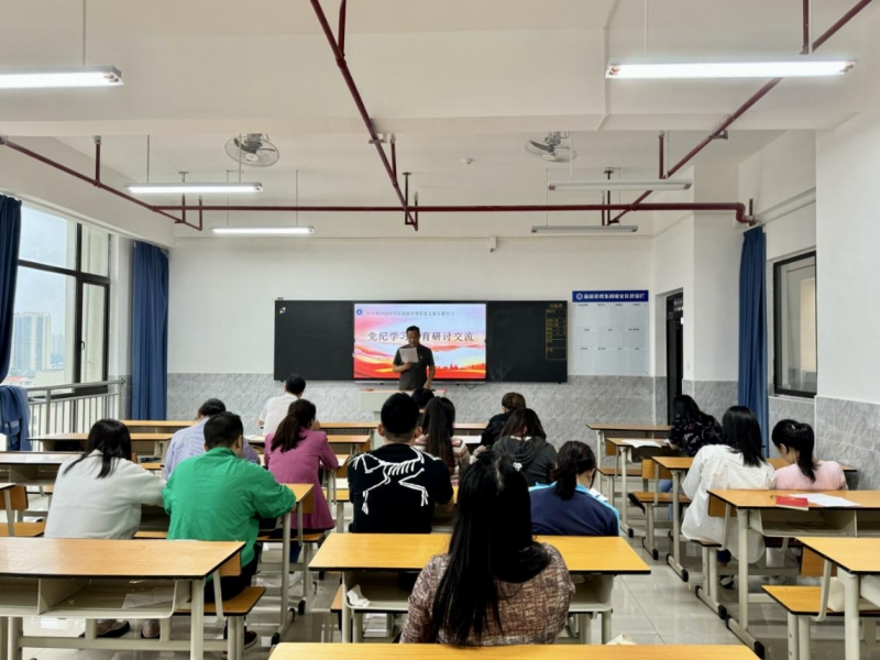 (通讯员 张梦)党纪铸基石,党风扬正气。为有序推进党纪学习教育走深走实,2024年6月6日下午,旅游管理系党支部在图书馆804教室开展“一月一课一片一实践”主题党日活动。此次活动由党支部副书记马欣主持,支部全体党员及入党积极分子参与。