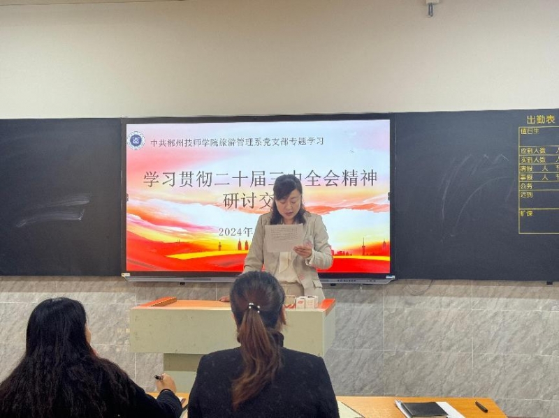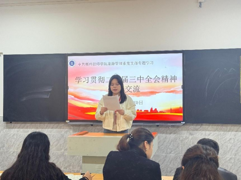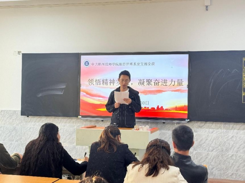 (通讯员 张梦)2024年10月30日下午,旅游管理系党支部在图书馆1004教室常态化开展“一月一课一片一实践”主题党日活动。此次活动由党支部副书记马欣主持,支部全体党员、预备党员和入党积极分子参加活动。