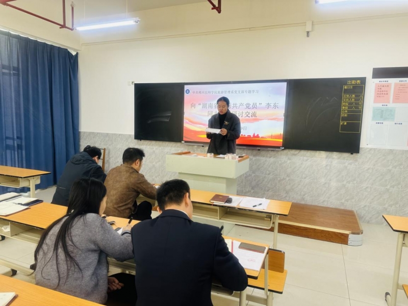 (通讯员 张梦)11月29日下午,旅游管理系党支部在图书馆1004教室开展“一月一课一片一实践”主题党日活动。此次活动由党支部副书记马欣主持,支部全体党员、预备党员和入党积极分子参加活动。
